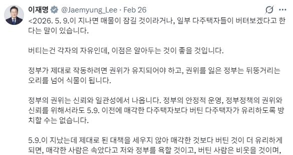 โ5์ 9์ผ ์ด์ ์ ๋งค๊ฐํ ๋ค์ฃผํ์๋ณด๋ค (๋งค๋ฌผ์ ๋ด๋์ง ์๊ณ ) ๋ฒํด ๋ค์ฃผํ์๊ฐ ์ ๋ฆฌํ๋๋ก ๋ฐฉ์นํ ์๋ ์๋คโ๋ ๊ฒ ์ด์ฌ๋ช